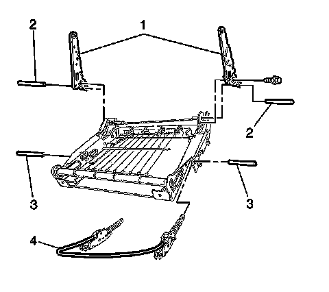 2. Install the roll pins (2) to the recliner to the seat back. Use new roll pins.