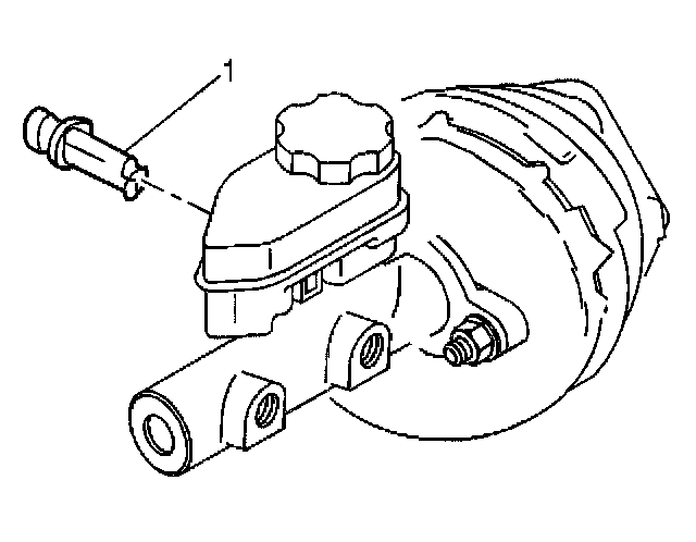 2. Remove the fluid level sensor (1). Use needle nose pliers in order to compress the switch locking tabs at the outboard side of the master cylinder.
