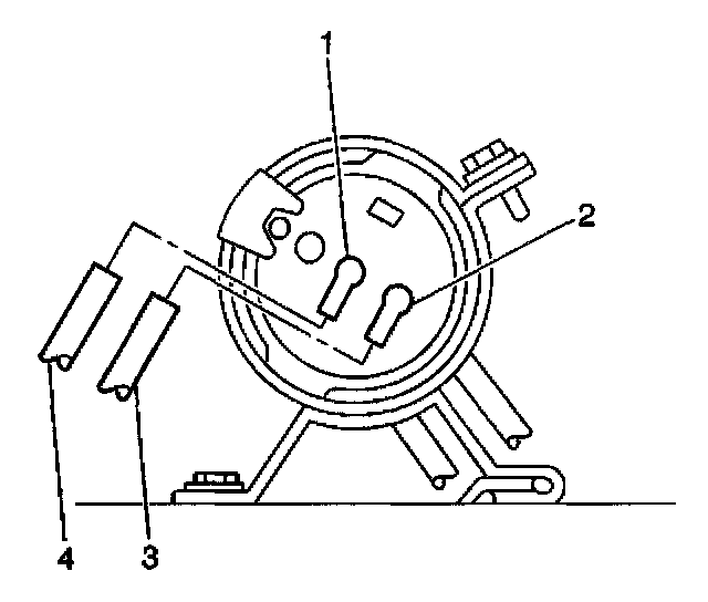 2. Remove the hoses (3, 4) from the canister fittings (1, 2). Mark the hoses to install on the new canister.