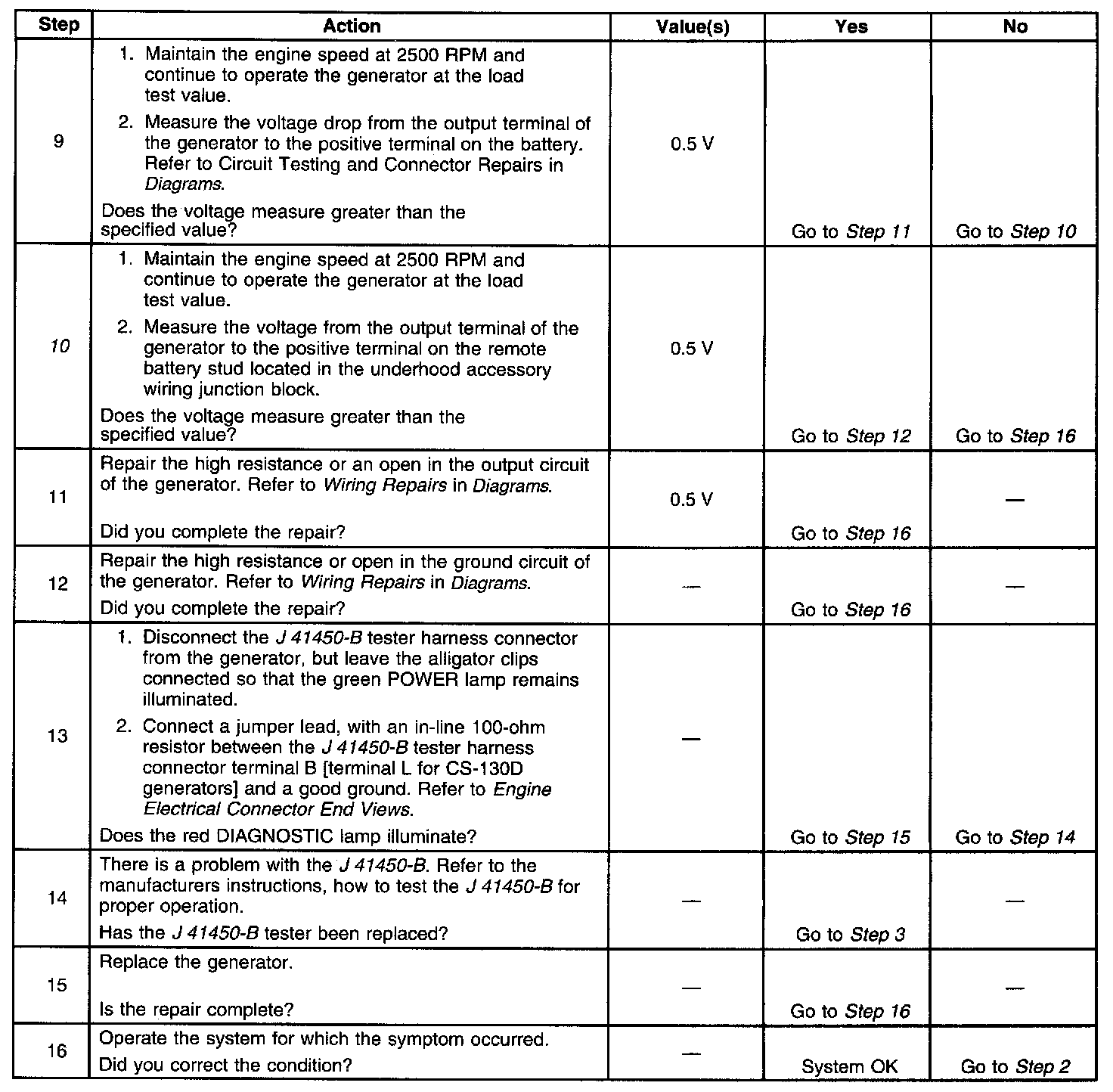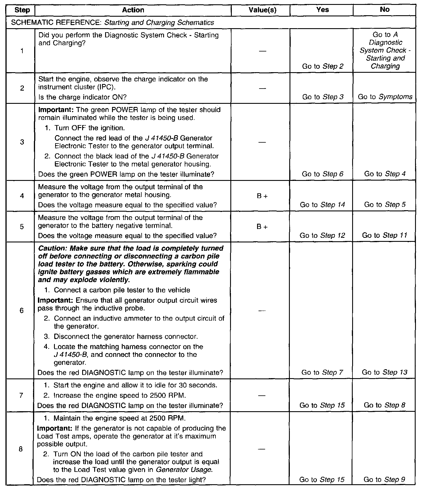 If the test has shown the generator to be OK, however the condition remains, test the PCM or its control circuit(s) to the generator.