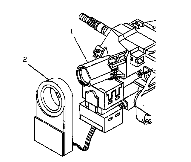 7. Install the ignition and key alarm switch assembly (1) onto the lock module assembly.