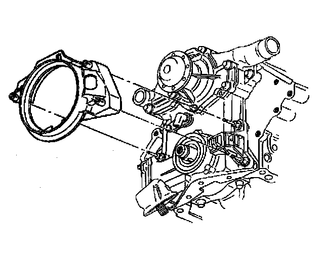 18. If replacing the engine front cover, remove the water pump from the engine front cover. Refer to Water Pump Replacement in Cooling System.