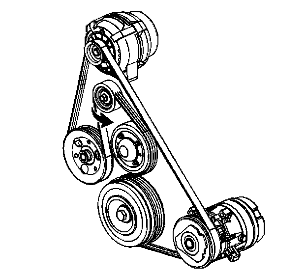 Removal Procedure1. Lift or rotate the drive belt tensioner using a 15-mm box end wrench on the pulley nut.