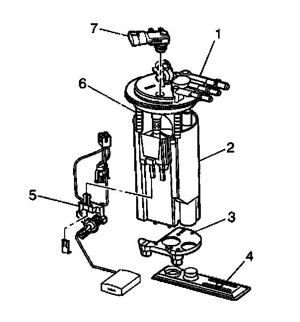3. Remove the fuel level sensor (5) from the modular fuel sender.