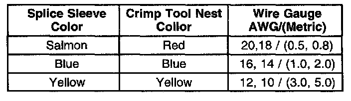 5. Select the proper splice sleeve (2) and the required crimp nest tool, refer to the Crimp and Seal Splice Table.