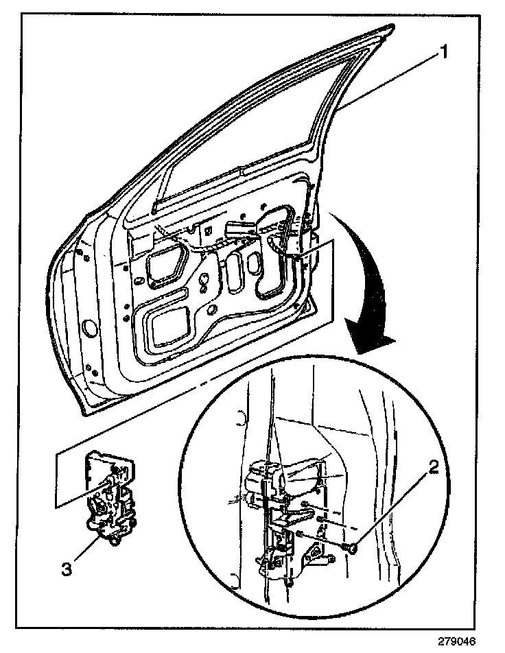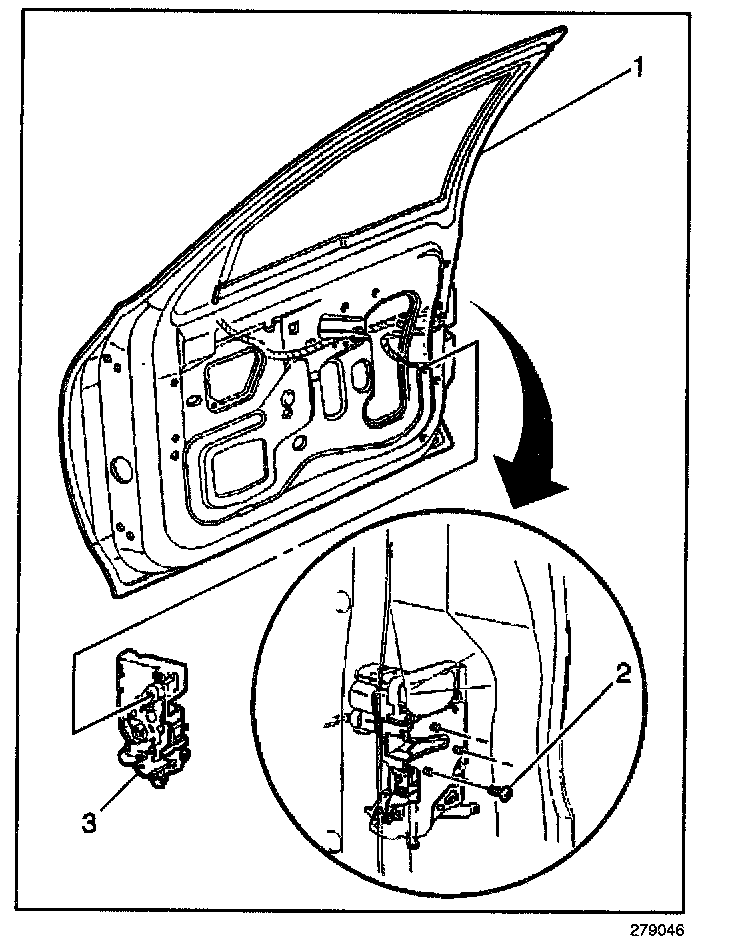 9. Remove the inside handle rods from the front door lock assembly (3).
