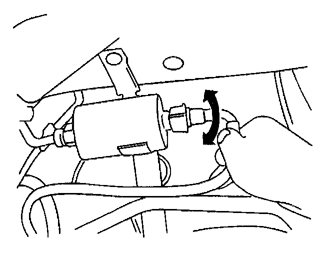 5. Grasp the fuel filter and the fuel pipe quick-connect fitting. Twist the quick-connect fitting 1/4 turn in each direction to loosen any dirt within fitting. Using compressed air, blow out dirt from quick-connect fittings at end of fuel filter.