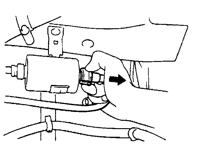 6. Remove the quick connect fitting by pushing inward toward the fuel filter and grasping the plastic tab around the connector and pull apart.