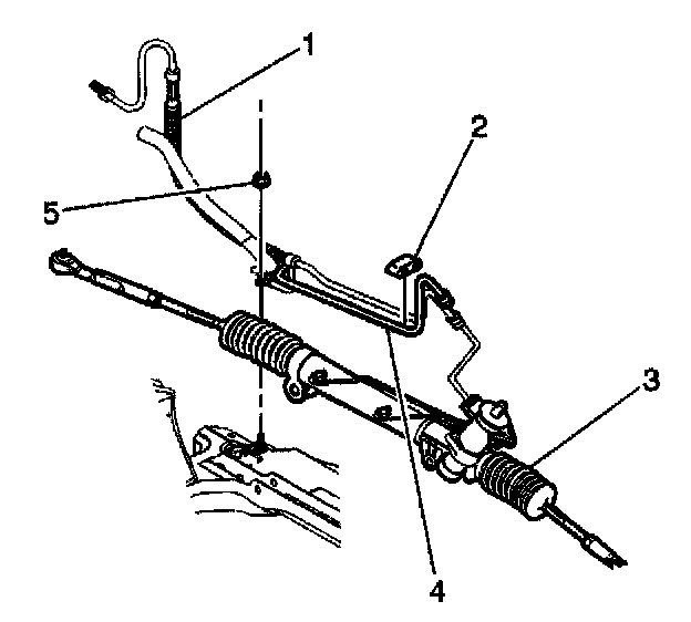 4. Remove the power steering return hose (4) from the steering gear (3).
