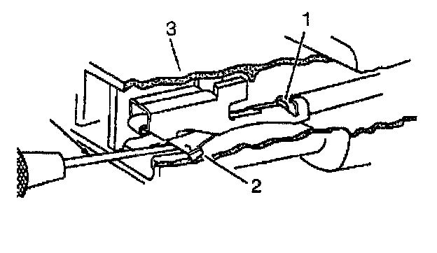 4. Grasp the wire at the back of the connector body and gently pull the terminal (1) from the connector body (3).