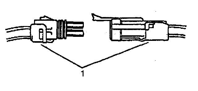 ^ Insert the Weather Pack� terminal removal tool into the front (mating end) of the connector cavity until it rests on the cavity shoulder (1).