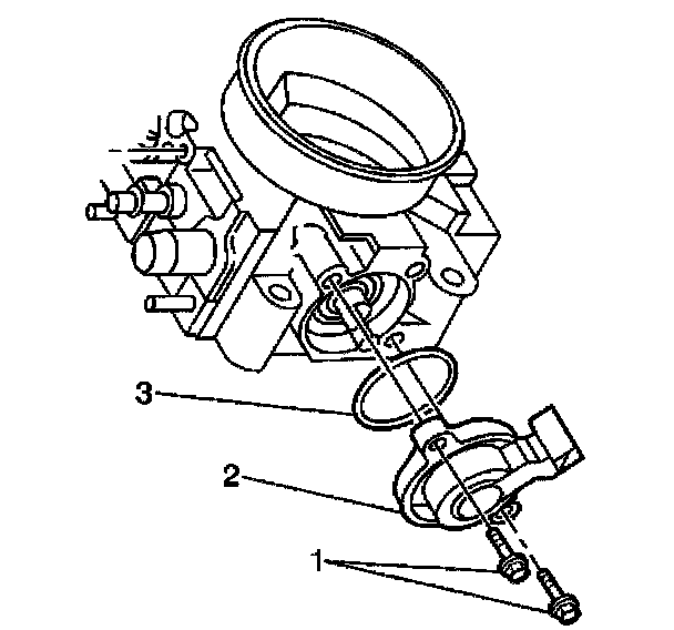 1. With the throttle valve in the normal closed (idle) position, install the throttle position sensor (2) and seal (3) on the throttle body assembly.