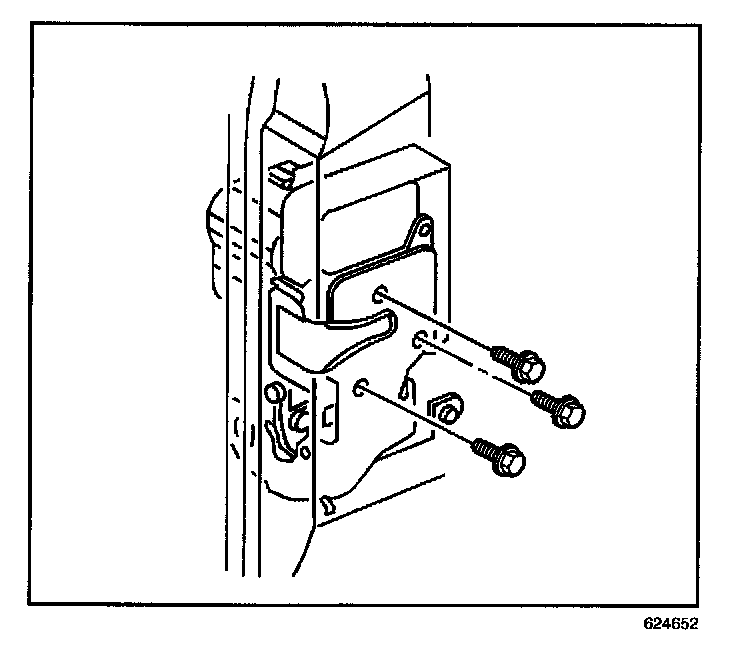 2. Install the lock in the position through the access hole in the front door inner panel.