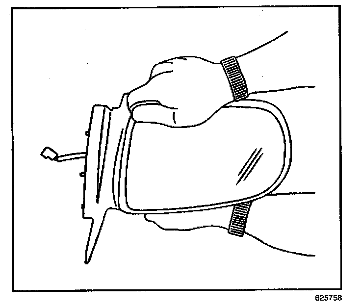 2. Install the mirror face to the adjuster mechanism with the palm of the hand on the center of the glass, pressing in until fully seated.