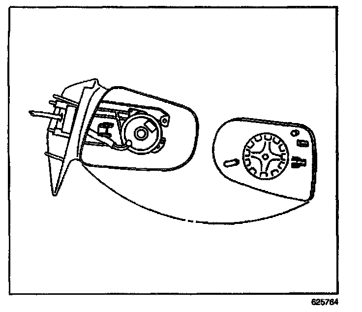 2. Remove the mirror face from the mirror housing with sufficient force to disengage the snap-fits from the adjuster mechanism.