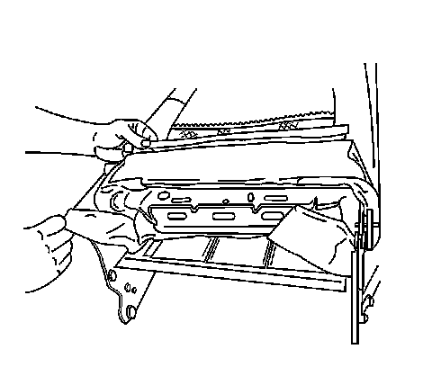 2. Remove the back from the front seat. Refer to Front Seat Back Replacement (Front Seat Back Replacement).