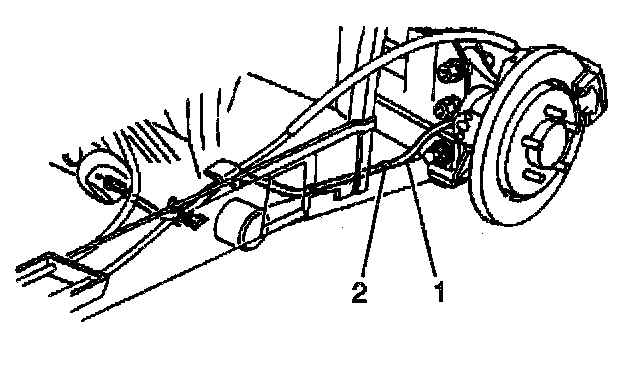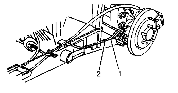 3. Remove the rear wheel speed sensor jumper harness (1) from the retaining clips (2).