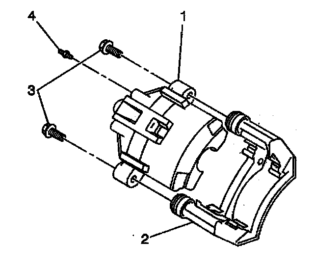 1. Ensure that the caliper pin boots (4) are properly installed.