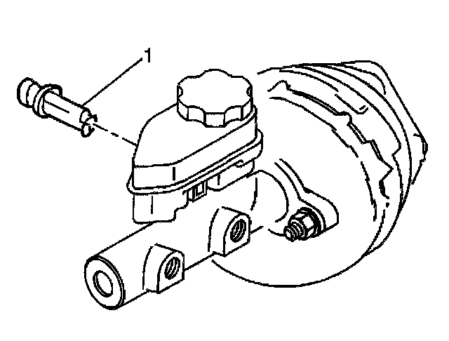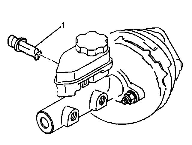 2. Remove the fluid level sensor (1). Use needle nose pliers in order to compress the switch locking tabs at the outboard side of the master cylinder.