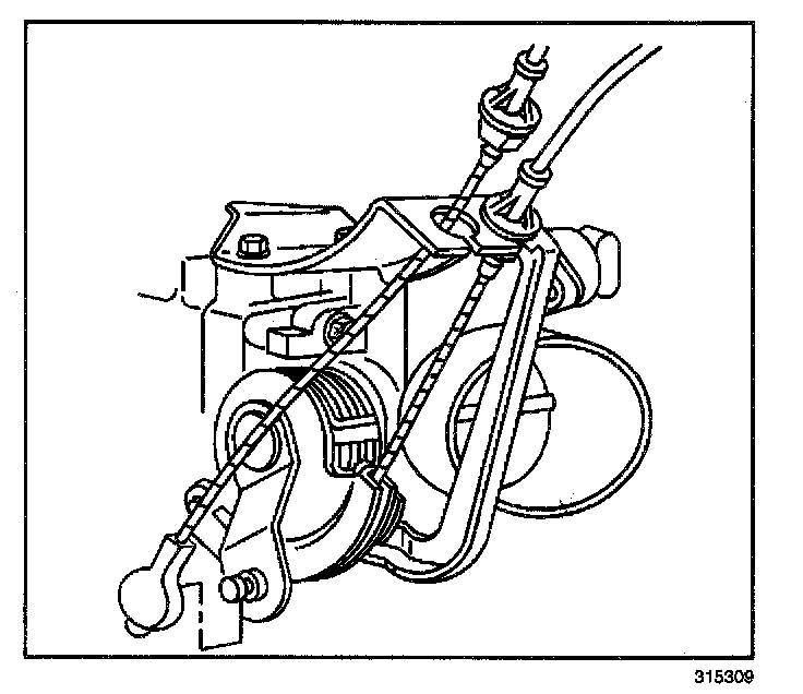 REMOVAL PROCEDURE1. Remove the cable from the throttle lever and accelerator control cable bracket.