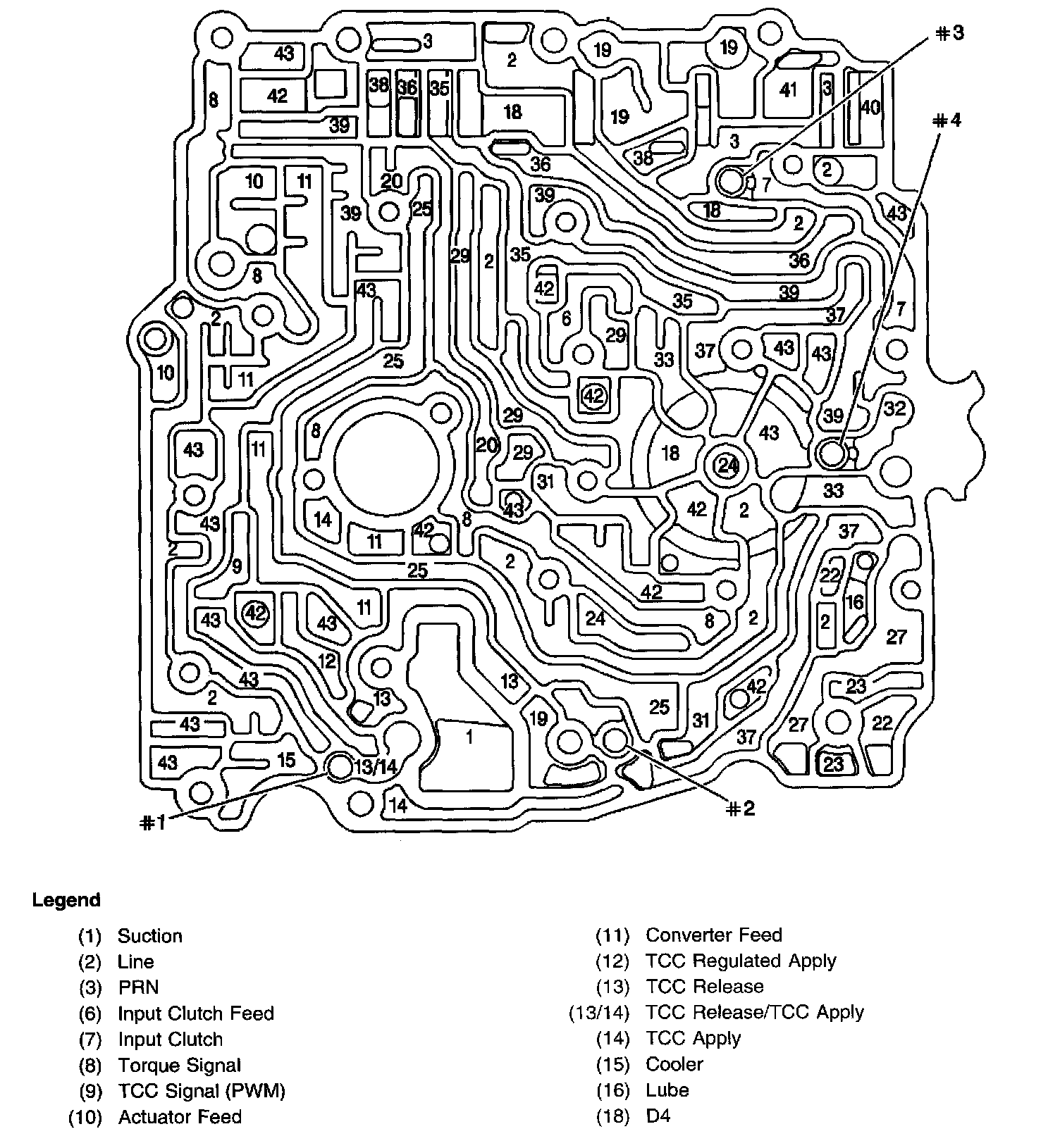 Case Cover Fluid Passages (Control Valve Body Side)