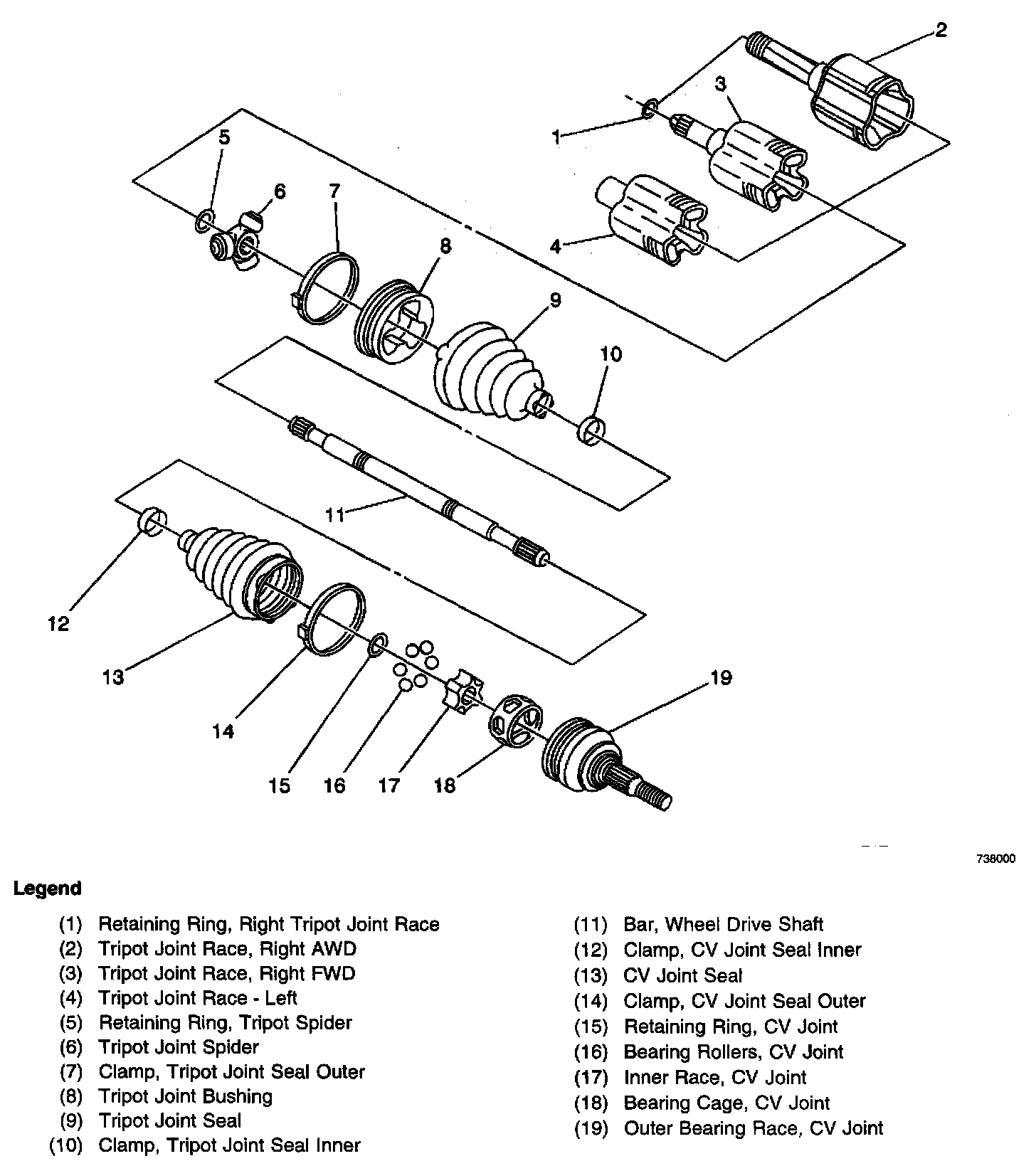 Wheel Drive Shafts Disassembled Views (FWD)