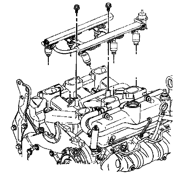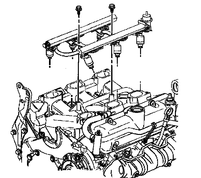 6. Remove the fuel feed and return pipe from the fuel injector rail.