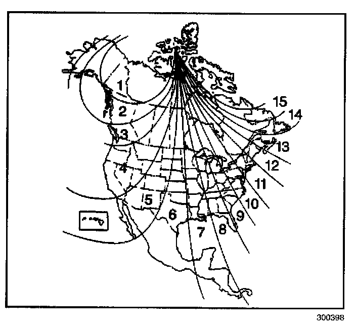 Compass variation is the difference between magnetic north and geographic north. In some areas of the country the difference is great enough to cause the compass to give a false reading. If this occurs, the compass variance must be set. View the Variance Zone Display to determine the correct zone. The zones are numbered 1 - 15. Depress and hold both the MODE and the Set buttons simultaneously while the DIC is in the Compass/Temperature mode for 5 seconds. After 5 seconds, the DIC will display the current variation setting. Release the buttons and adjust to the correct variation number using the MODE button. Consult the map for variation zone numbers. When the desired variation is reached press the Set button to accept.