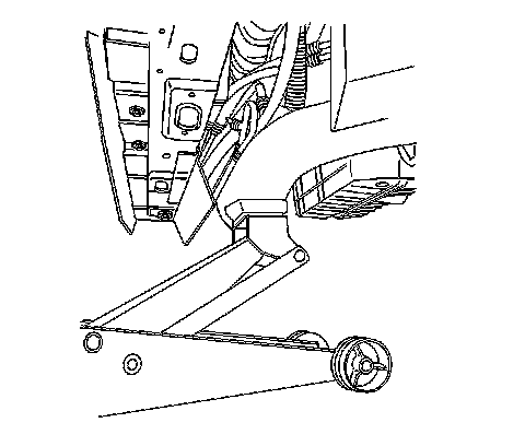 Caution: To avoid any vehicle damage, serious personal injury or death when major components are removed from the vehicle and the vehicle is supported by a hoist, support the vehicle with jack stands at the opposite end from which the components are being removed and strap the vehicle to the hoist.