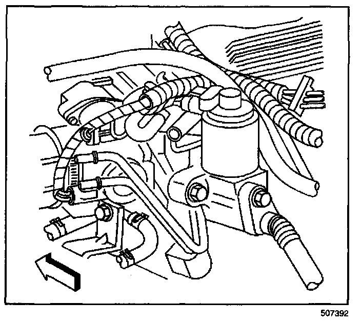 4. Remove the bolt retaining the pipe assembly from the EGR valve and carefully pull the pipe assembly back.