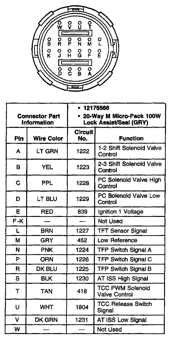 A/T Inline Harness 20-Way Connector, Transmission Side