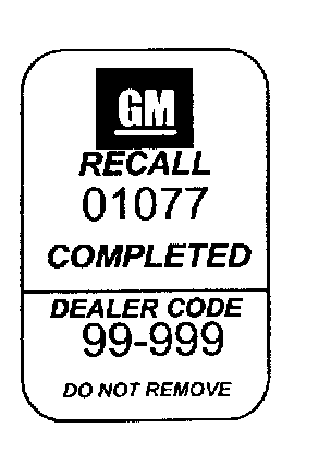 Place a Recall Identification Label on each vehicle corrected in accordance with the instructions outlined in this Product Recall Bulletin. Each label provides a space to include the recall number and the five (5) digit dealer code of the dealer performing the recall service. This information may be inserted with a typewriter or a ball point pen.