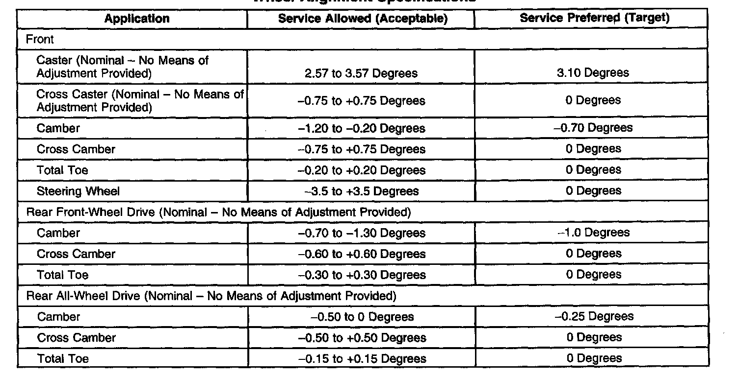 Wheel Alignment Specifications