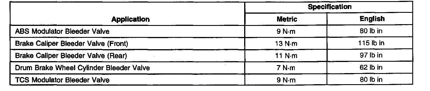 Brake Component Specifications
