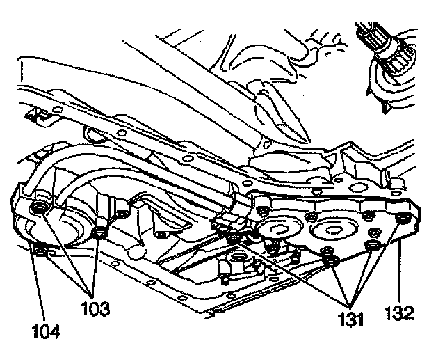 5. Remove the manual 2-1 band servo cover bolts (103).