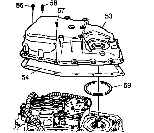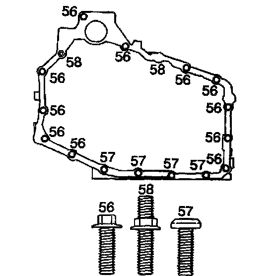^ Tighten the case side cover bolts (56-58) to 25 Nm (18 ft. lbs.).