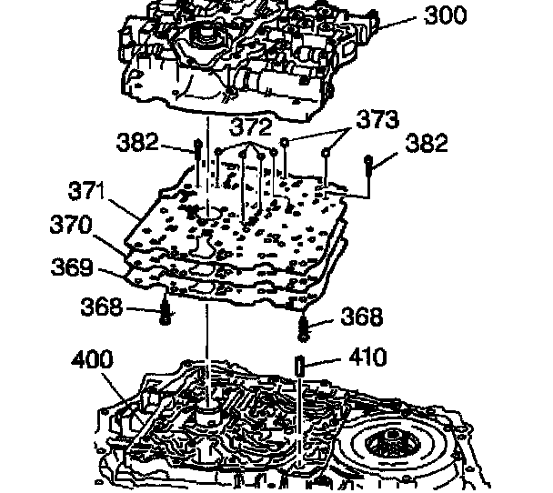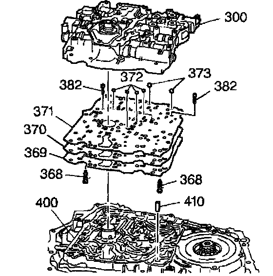 4. Remove the valve body (300) while keeping the spacer plate (370) with the transaxle.