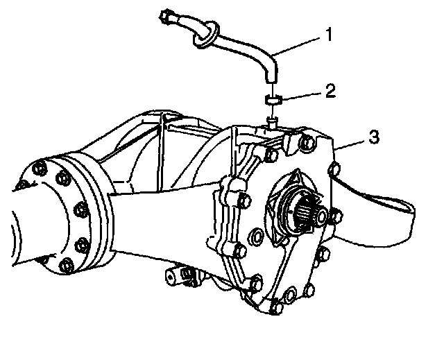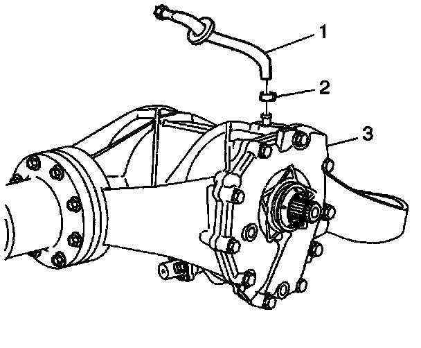 1. Install the vent hose (1) to the differential assembly.