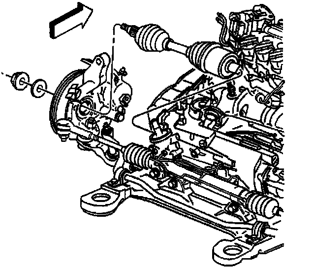 10. Using the J 42129, disengage the wheel drive shaft from the wheel hub and bearing and support the wheel drive shaft.