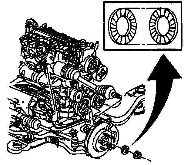Important: Ensure that the 2-piece, ramped washer is installed prior to installing the wheel drive shaft nut. The ramped sides of the washer must face each other.