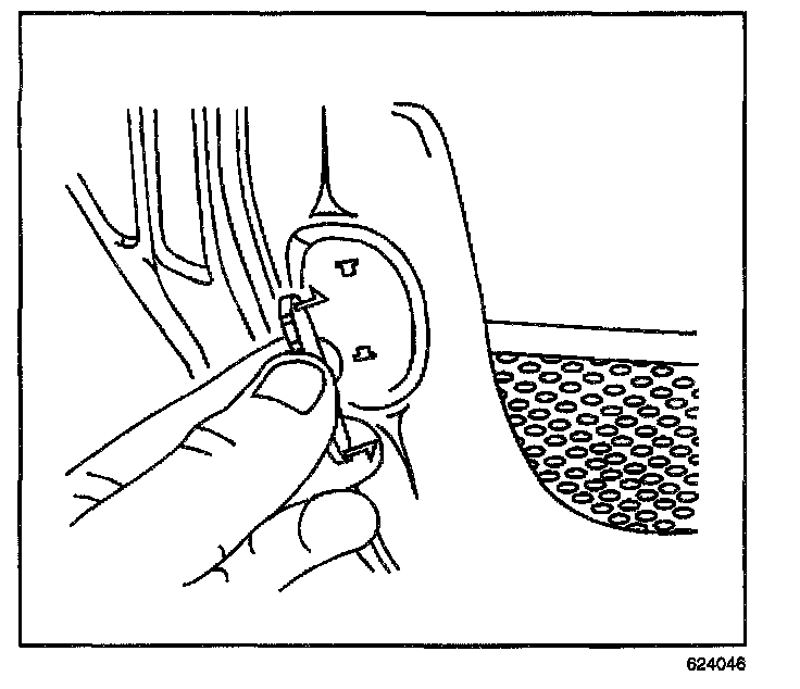 3. Remove the warning reflector from the front door trim panel using a small flat bladed tool, pressing on the tabs from the top of the warning reflector.