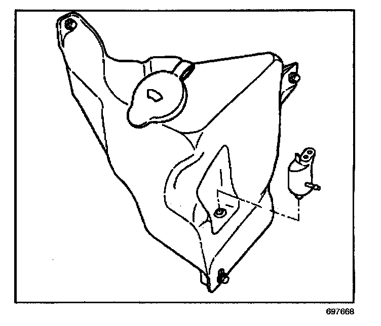 1. Position the front washer pump to the washer solvent container pressing in until fully seated.