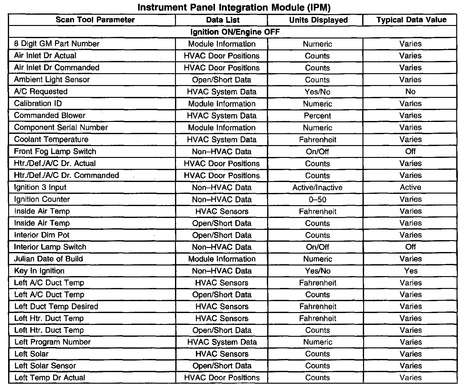 Scan Tool Data List