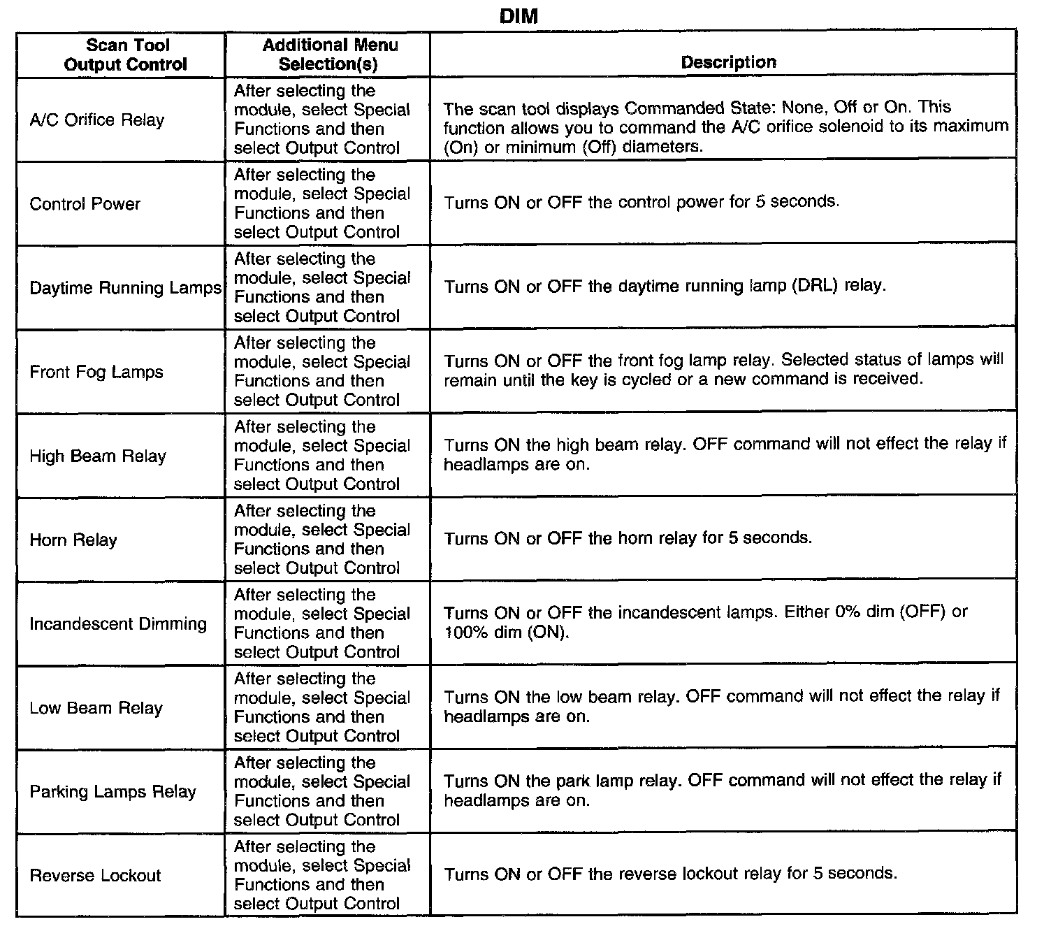 Scan Tool Output Controls