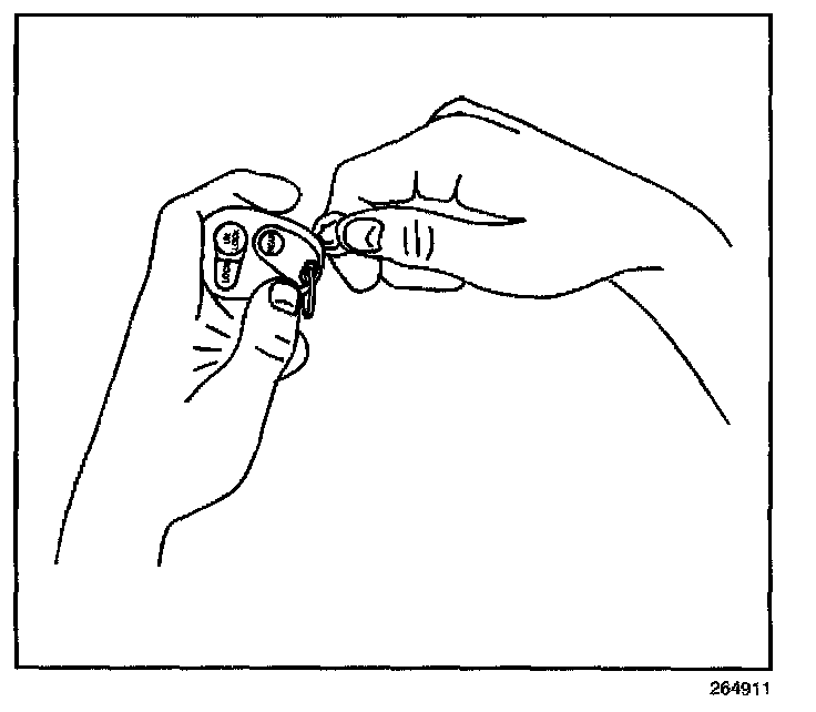 1. Insert a small coin between the two halves of the transmitter case at the slot provided near the key ring hole.