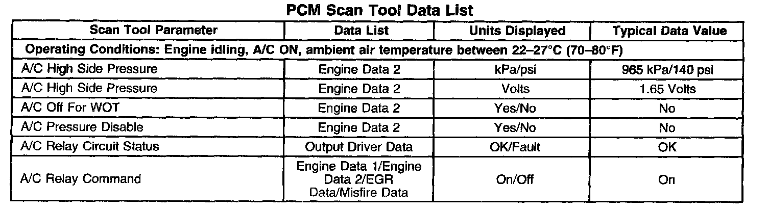 Scan Tool Data List - Powertrain Control Module (PCM)