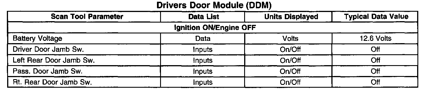 Scan Tool Data List - Drivers Door Module (DDM)