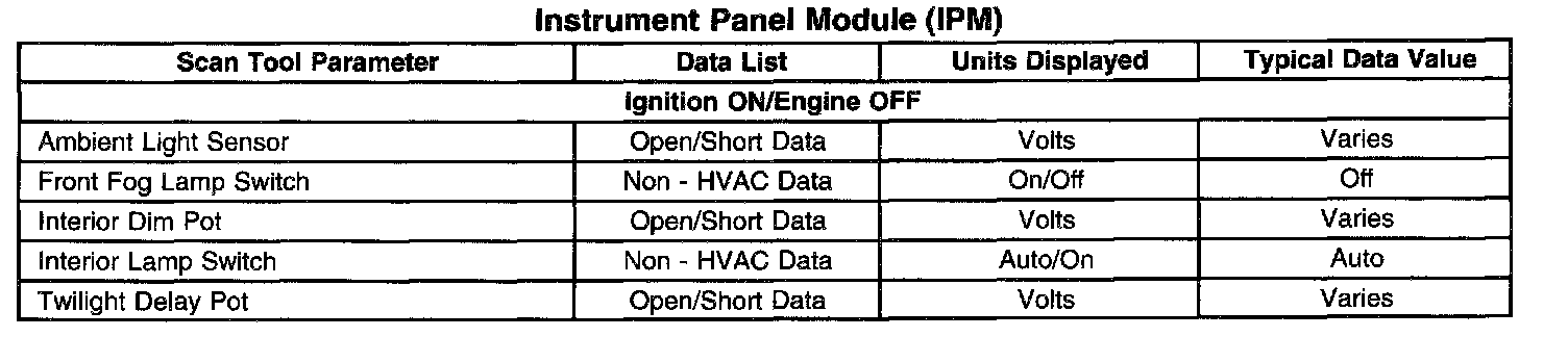 Scan Tool Data List - Instrument Panel Module (IPM)