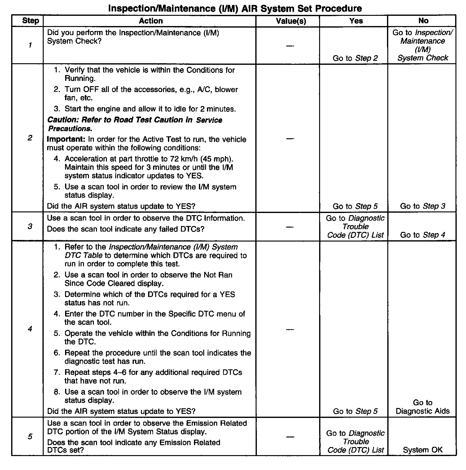 5. The I/M system status only reports on whether or not a diagnostic has run, not what the outcome of the test was If any Emission Related DTC sets after the tests are complete, the DTC will require diagnosis.