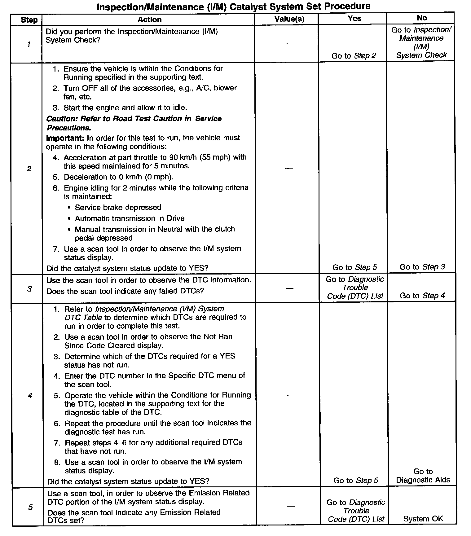 I/M Catalyst System Set Procedure